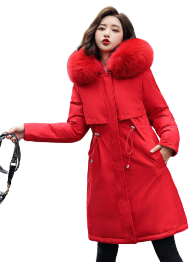Jachetă lungă pentru femei, de culoare roșie, în stil militar
